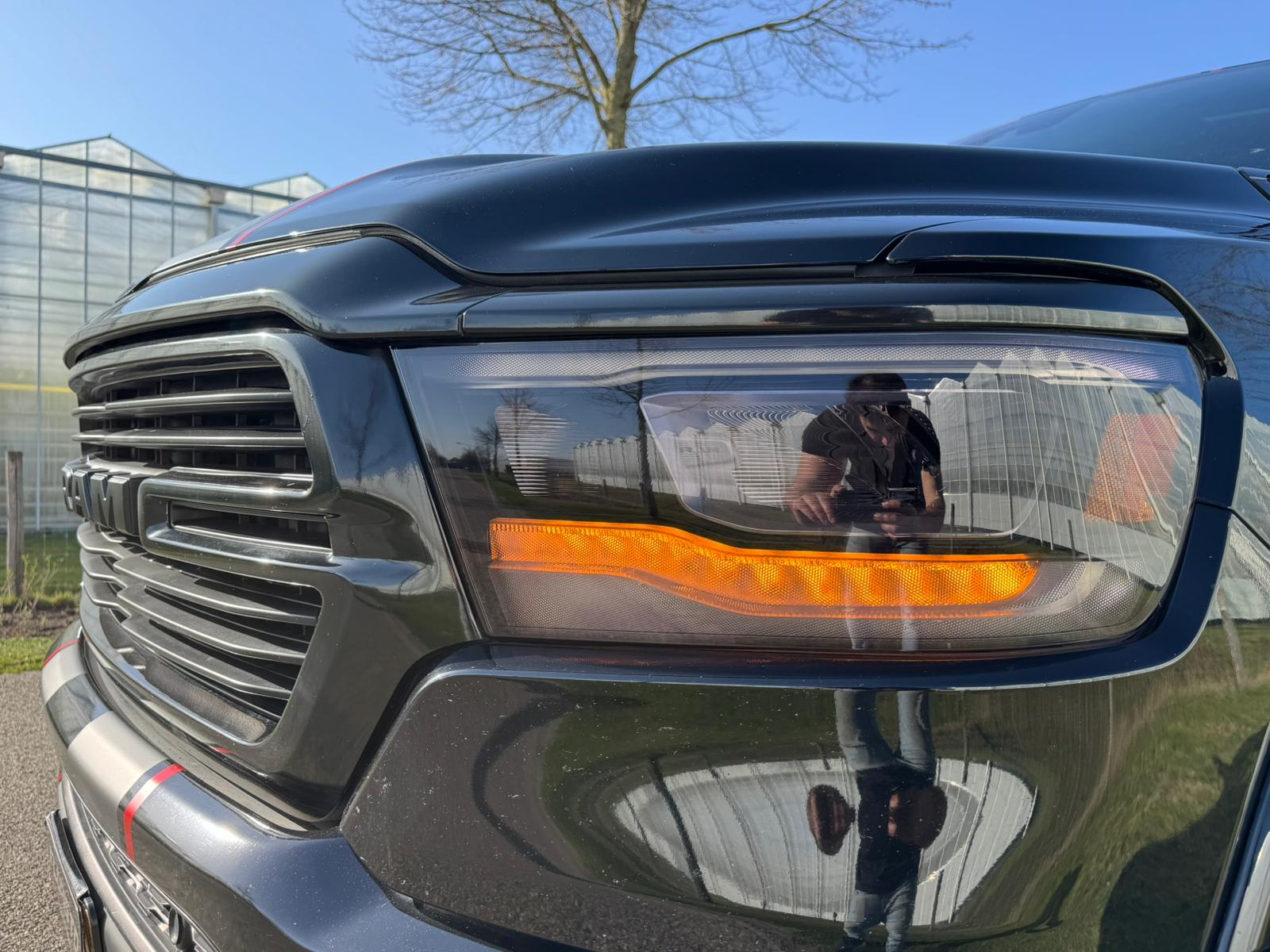 DODGE RAM 1500 5.7L HEMI V8 4X4 401PK * BLACK-OPPS * 22 INCH 4 – PLAY * HEAD-UP DISPLAY * DIGITALE BINNEN SPIEGEL CAMERA * OPEN UITLAATSYSTEEM * CUSTOM STRIPING * LPG PRINS 122 LITER * AFSTAND START * PPF SMOKE VERLICHTING ROND OM * GETINTE RUITEN * LANE ASSIST * BLIND SPORT RADAR IN SPIEGELS *